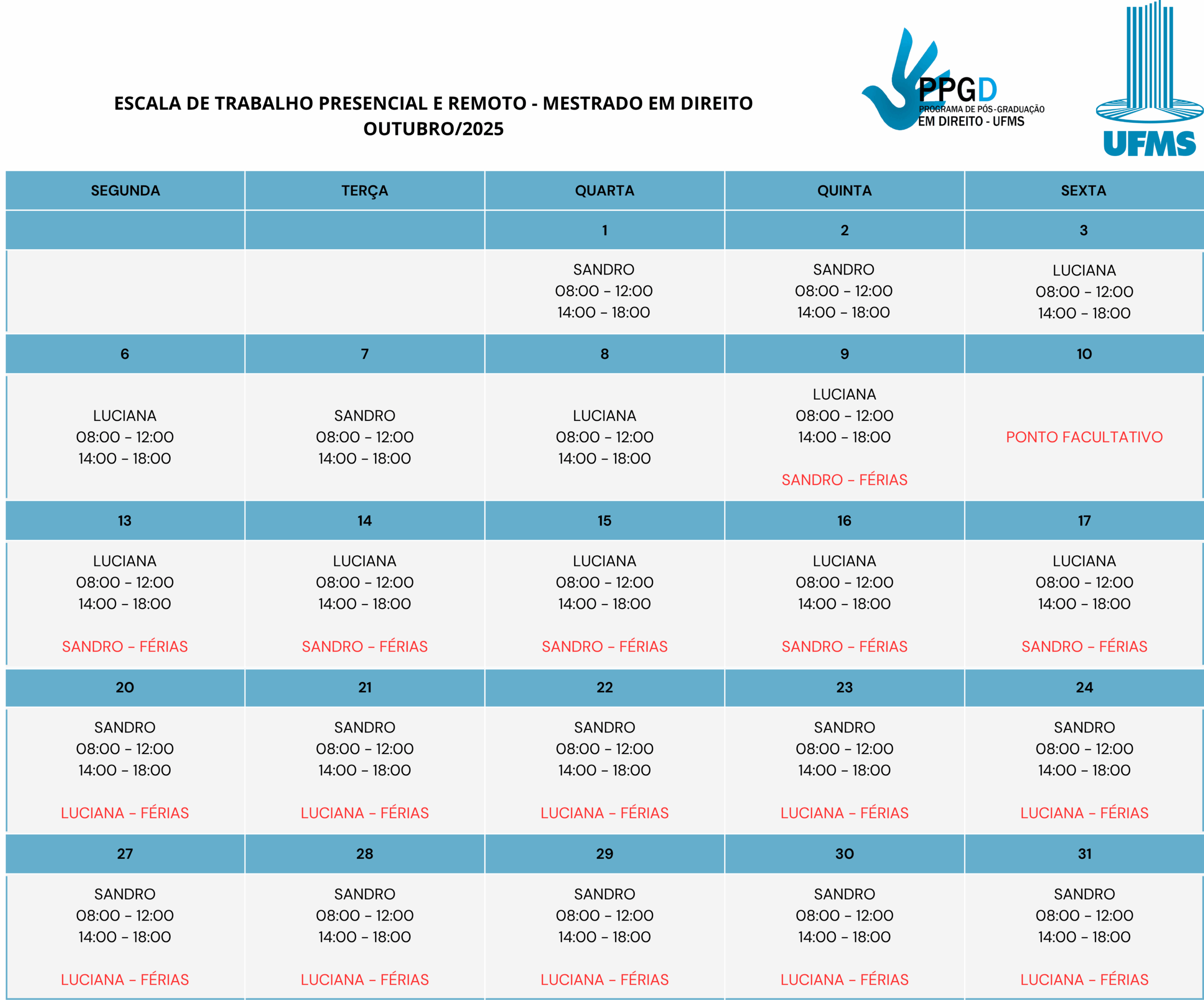 E-mail da secretaria – ppgd.fadir@ufms.br
