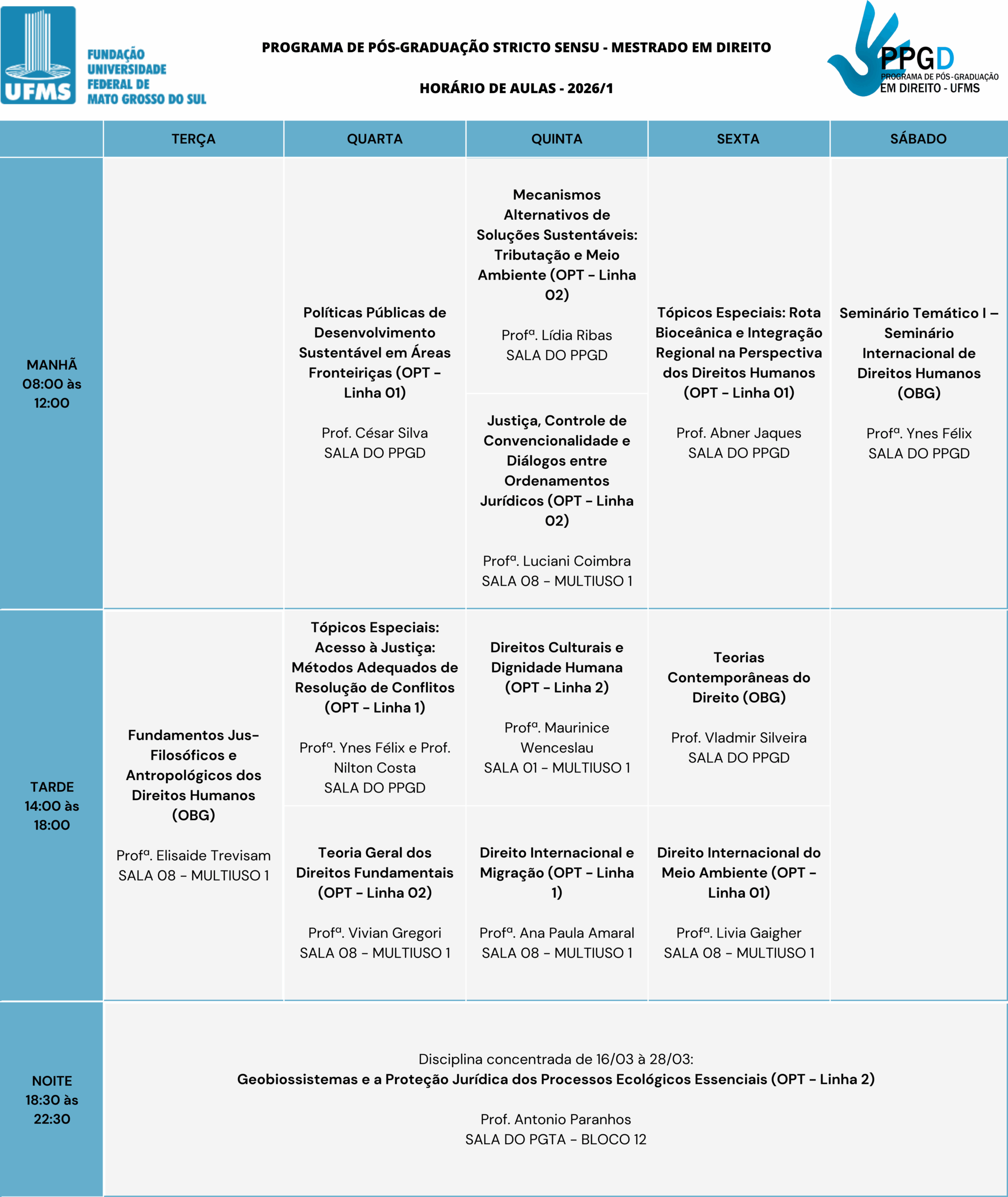 23 e 24 de fevereiro: período de solicitação de matrícula dos alunos regulares pelo Portal da Pós-Graduação (https://posgraduacao.ufms.br/portal)