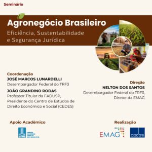 Acesse o programa em:https://www.trf3.jus.br/emag/cursosemag/seminario-agronegocio-brasileiro